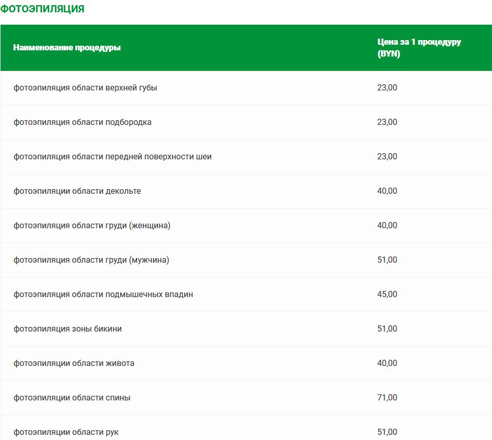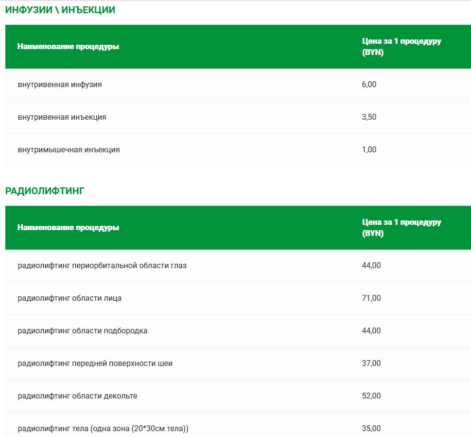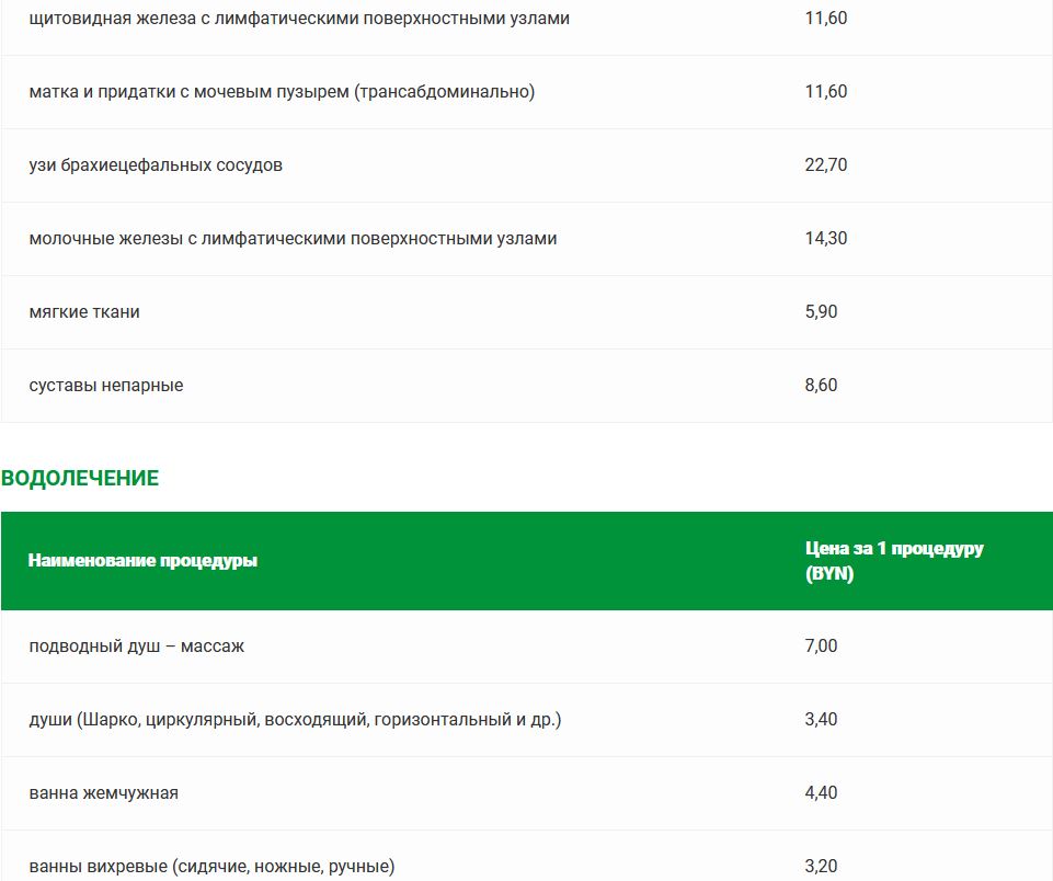 Прейскурант цен на платные медицинские услуги в санатории «Солнечный»